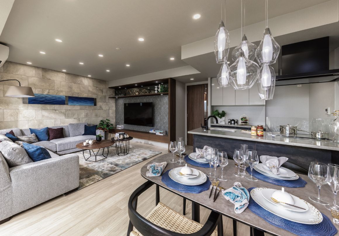 - ※写真は、クレアエムディア宮古島モデルルームのLタイプを撮影(2025年10月)したもので、オプション仕様・設計変更等(有料)を含みます。なお、家具・照明器具・調度品等は、販売価格には含まれておりません。タイプにより形状が異なります。なお、オプション等は申込み期限がございます。詳しくは係員へお尋ねください。