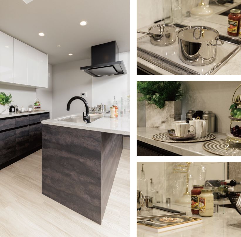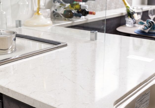スタイリッシュで高級感漂うワイドな人造大理石一体型カウンターを採用しています。