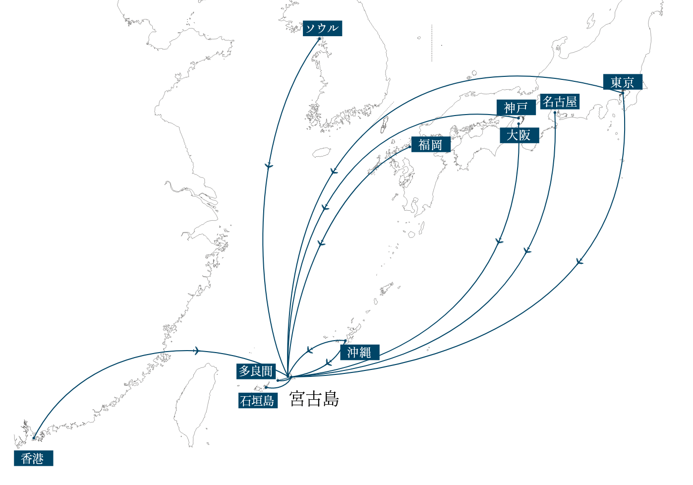 宮古島と国内外の主要都市を結ぶアクセスも充実。