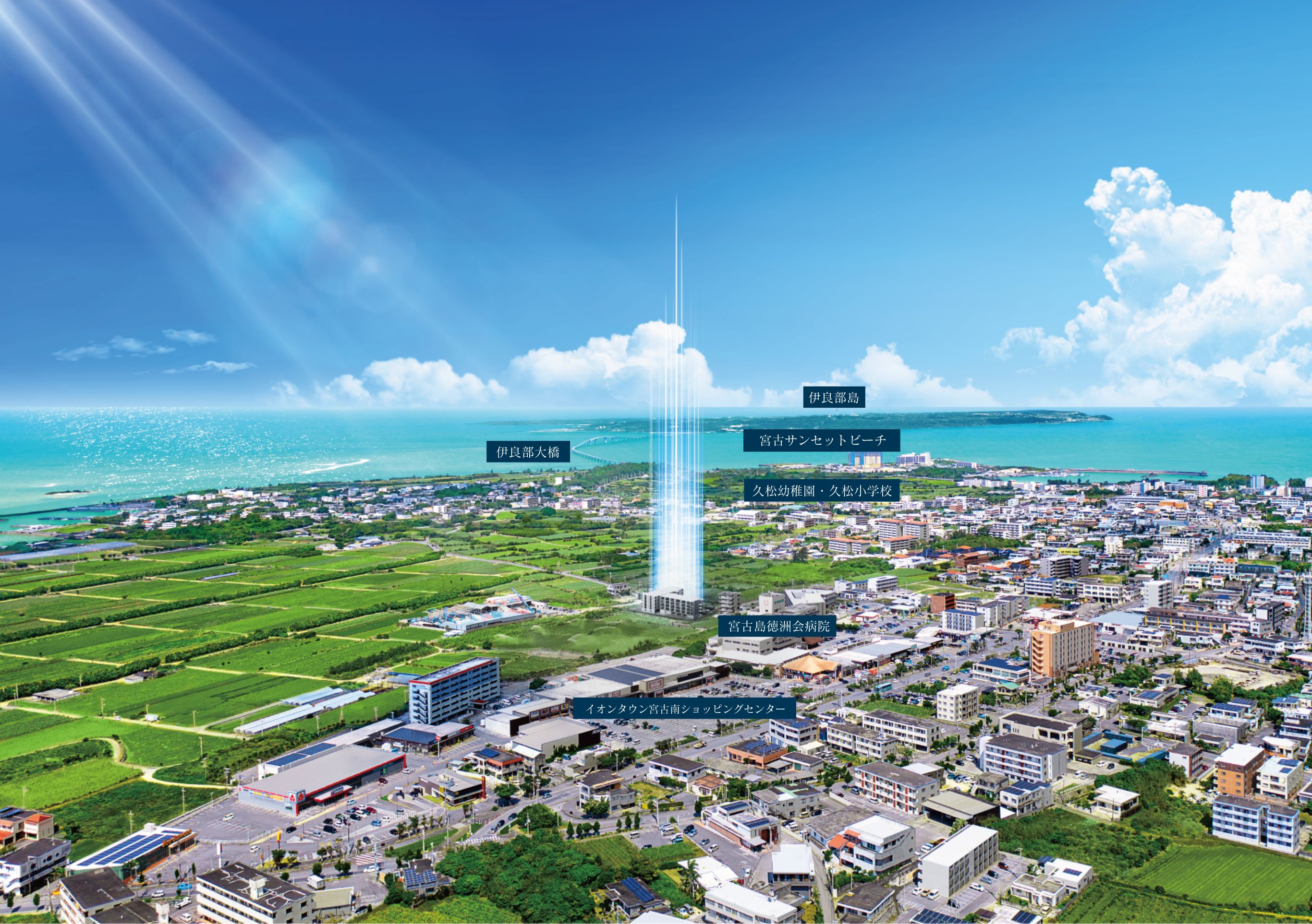 - ※掲載の空撮写真は、2025年4月に撮影したものに設計図を基に描き起こした外観CGを合成しており実際とは異なります。光の柱は物件のおおよその位置を示すものであり、建物の高さや敷地の規模を示すものではありません。